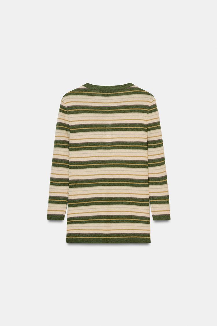 ZARA СВИТЕР В ПОЛОСКУ, ЭКРЮ/ХАКИ