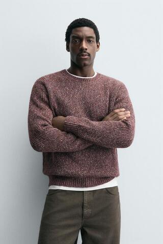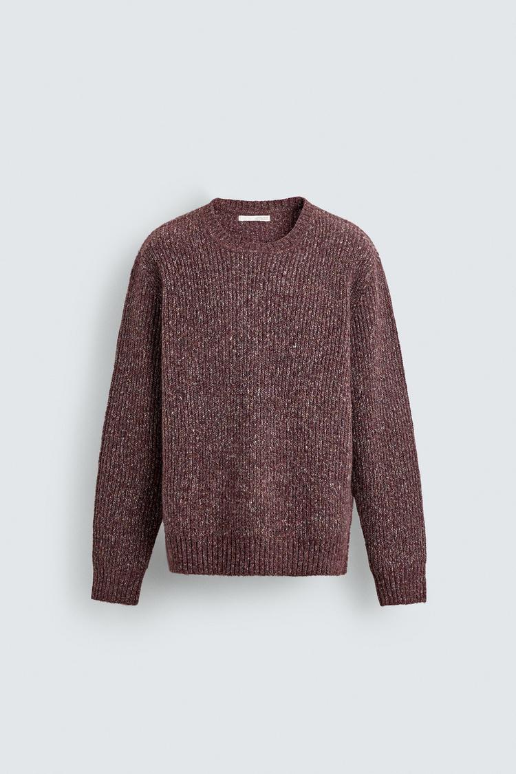 ZARA СВИТЕР В ПОЛОСКУ ИЗ СМЕСОВОЙ ШЕРСТИ, БУРГУНДИ