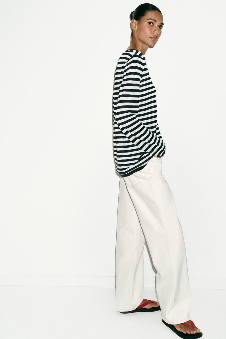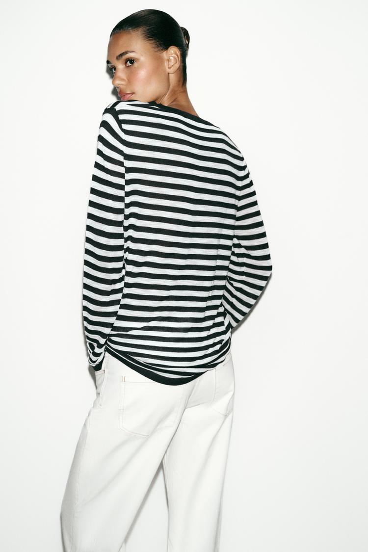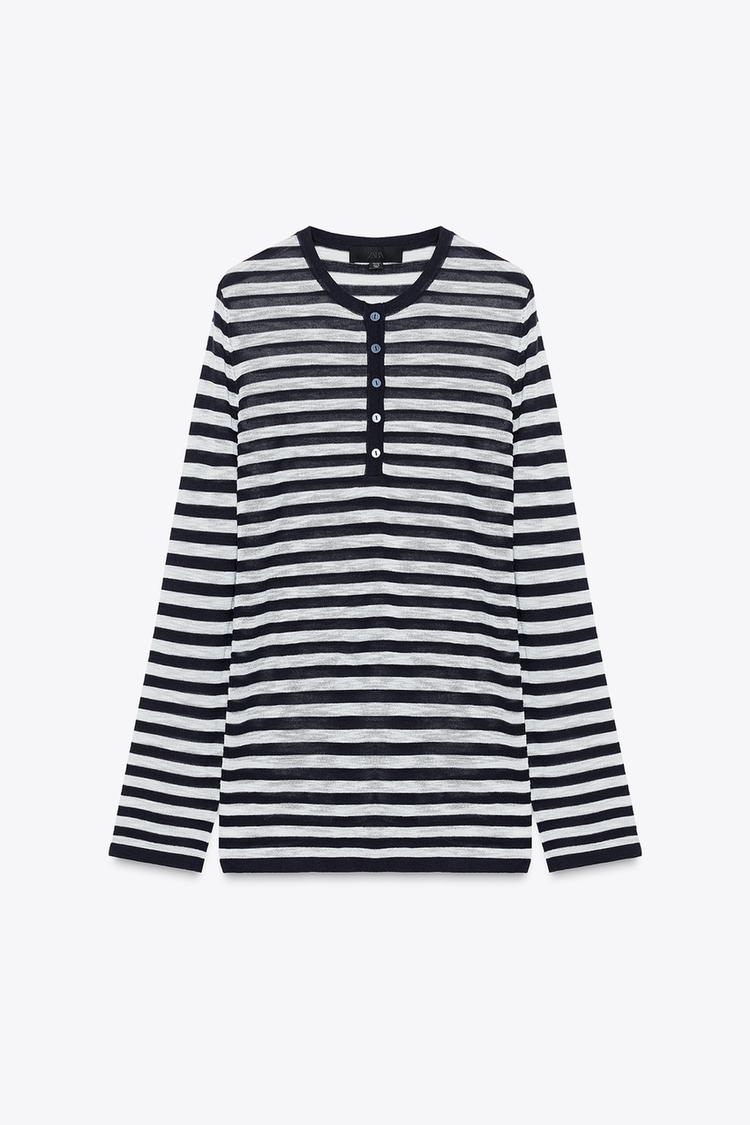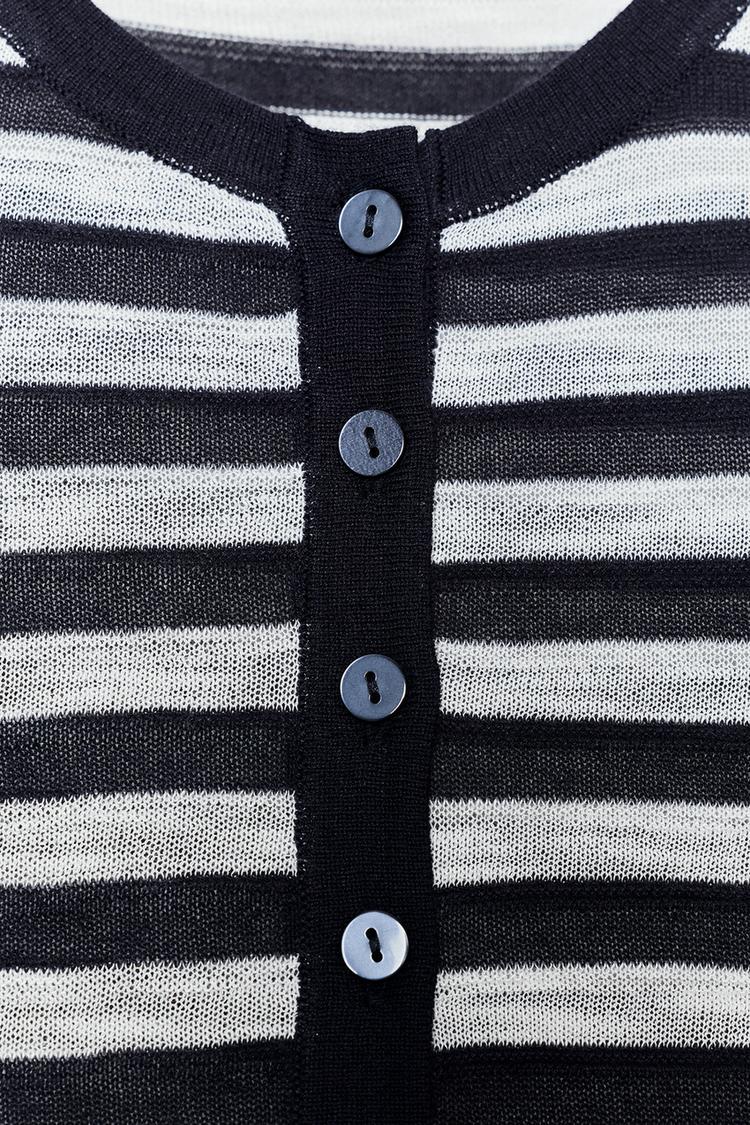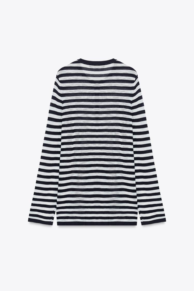 ZARA СВИТЕР В ПОЛОСКУ С ПУГОВИЦАМИ, ТЕМНО-СИНИЙ/БЕЛЫЙ
