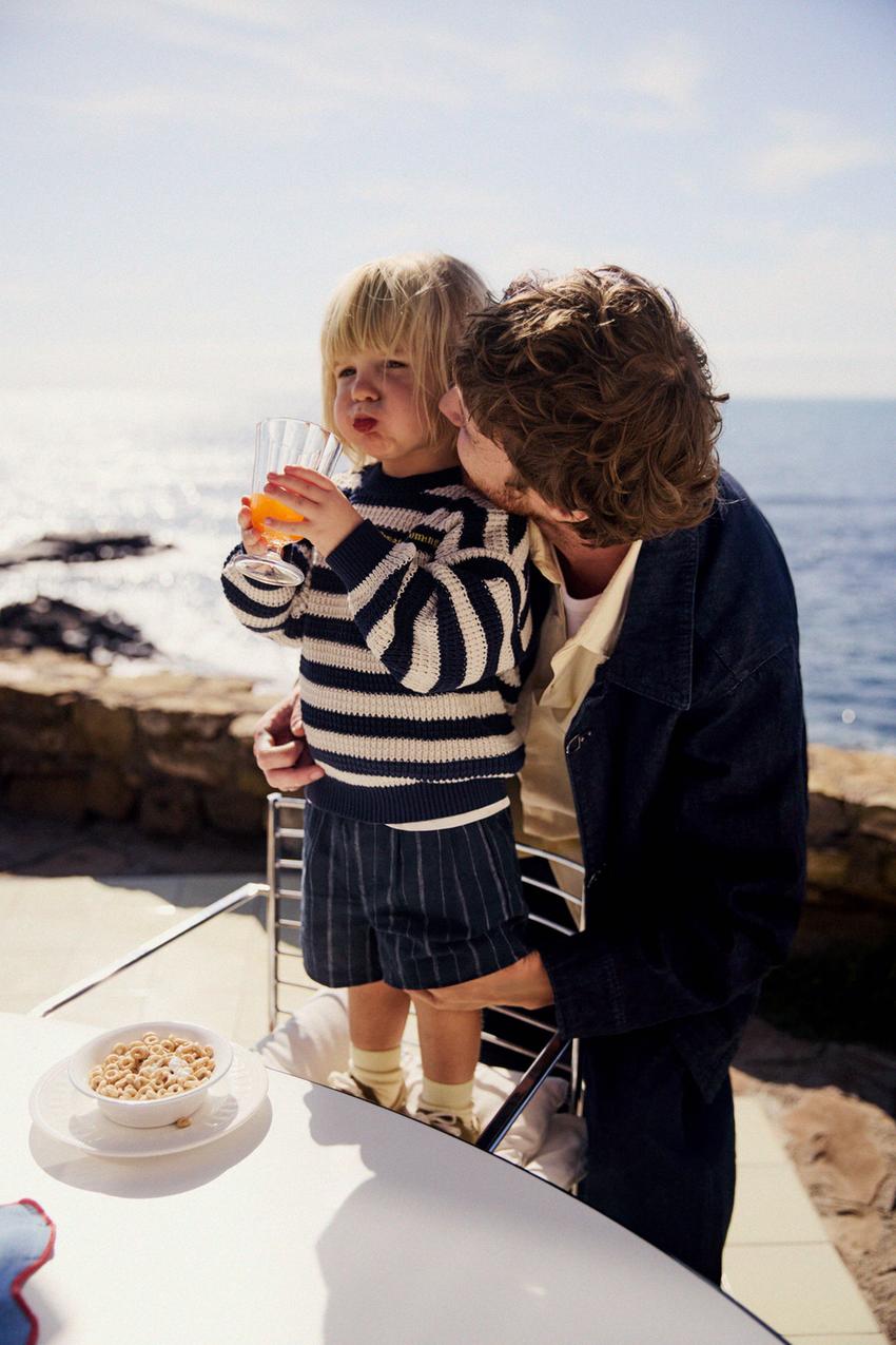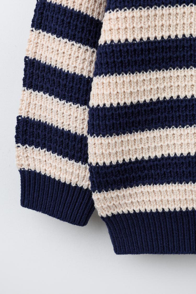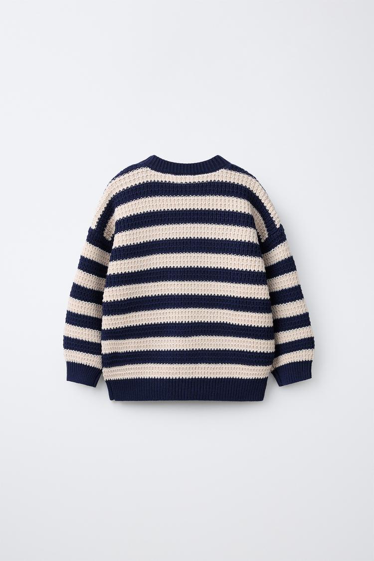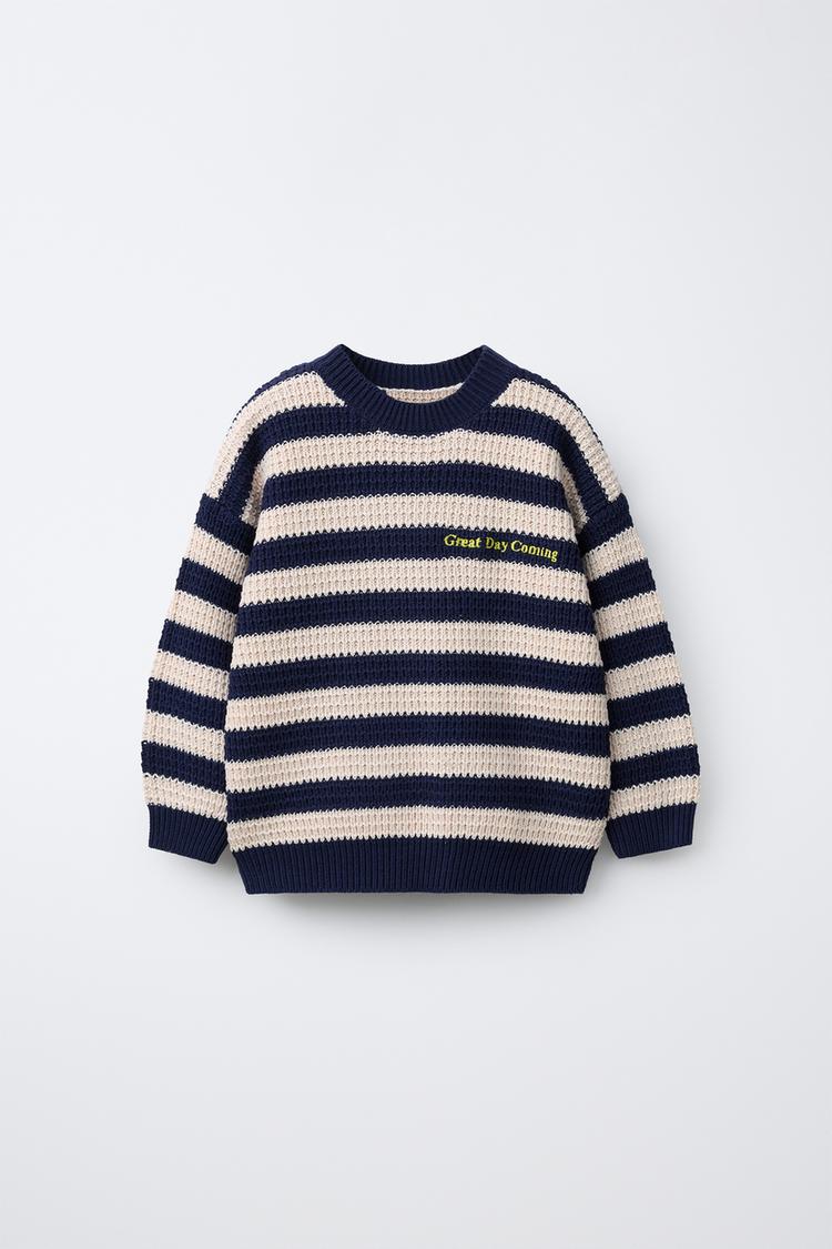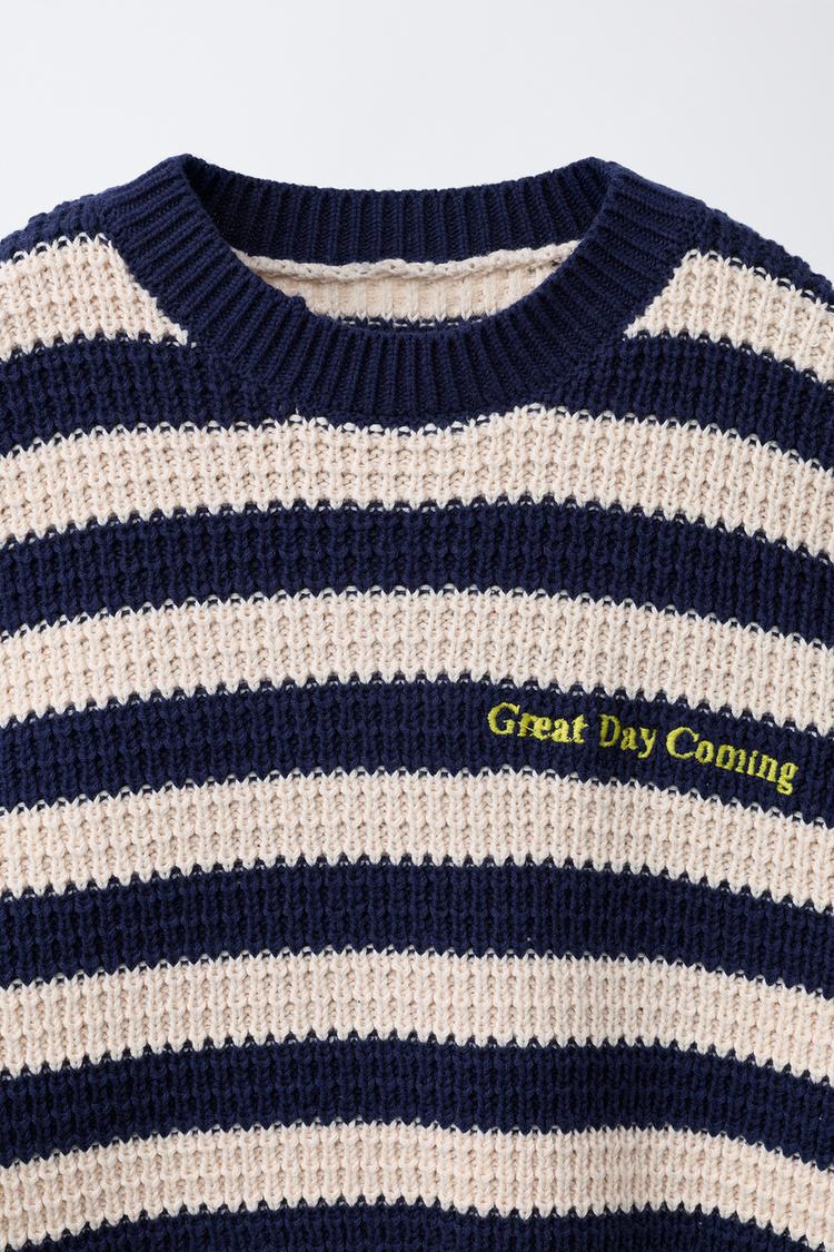 ZARA СВИТЕР В ПОЛОСКУ С ВЫШИТОЙ НАДПИСЬЮ, ЗЕЛЕНОВАТО-СИНИЙ
