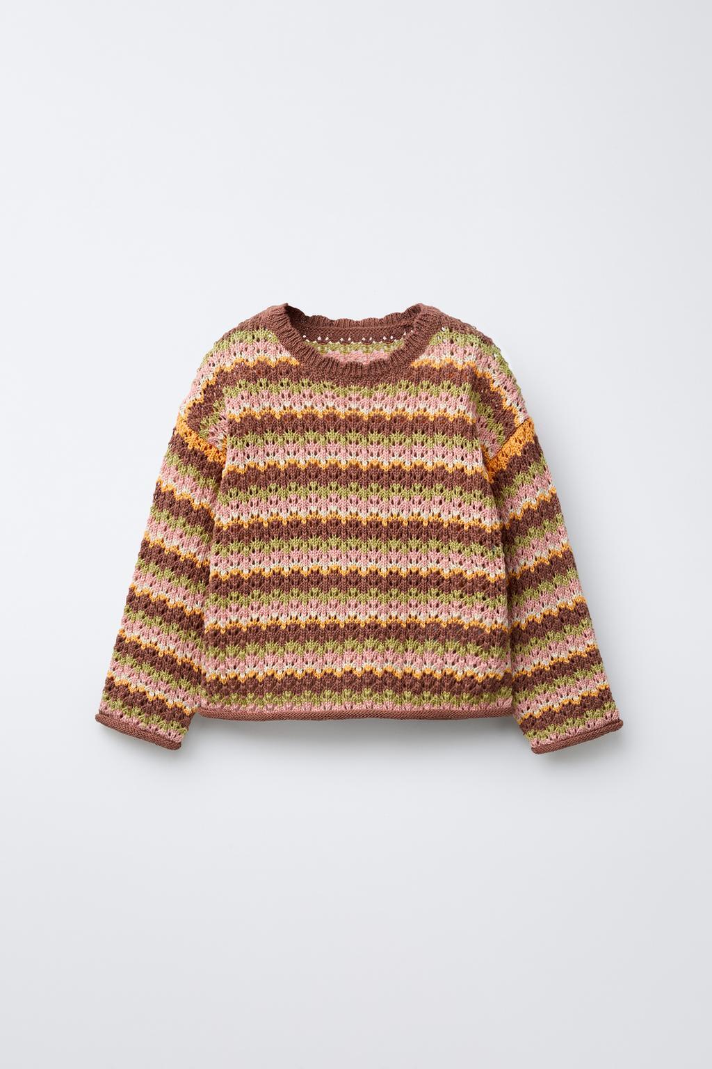 ZARA СВИТЕР В РАЗНОЦВЕТНУЮ ПОЛОСКУ, ШОКОЛАДНЫЙ