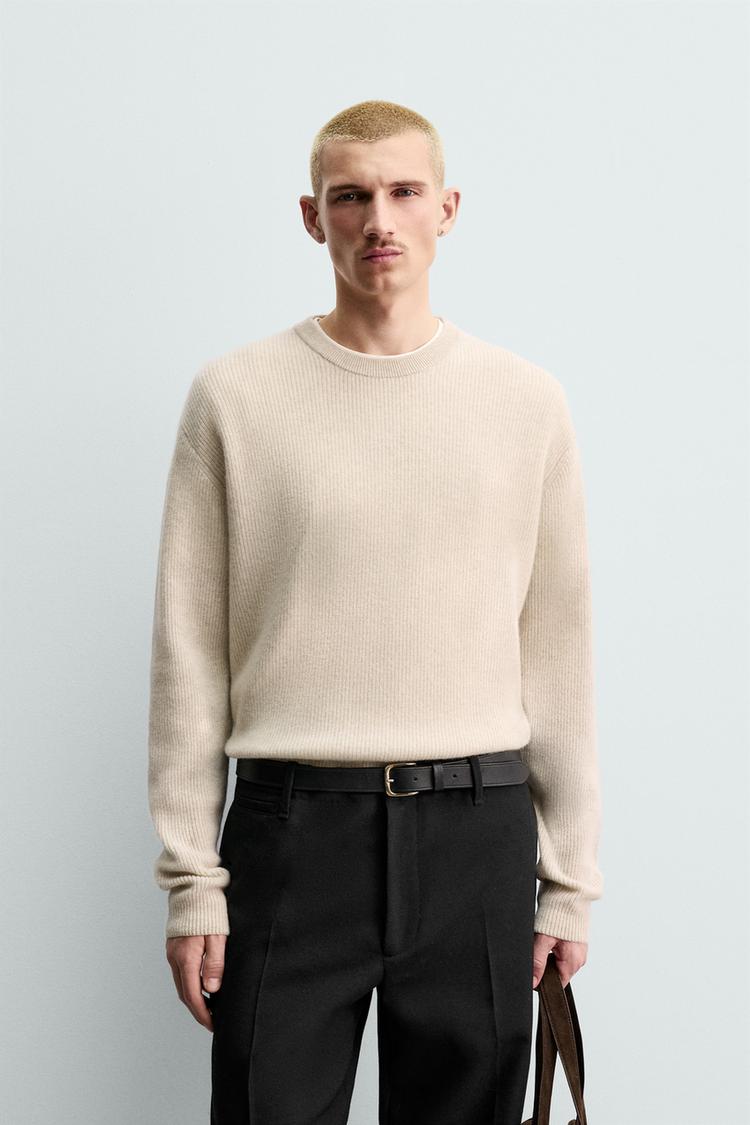 ZARA СВИТЕР В РУБЧИК ИЗ 100% КАШЕМИРА, ЭКРЮ МЕЛАНЖ