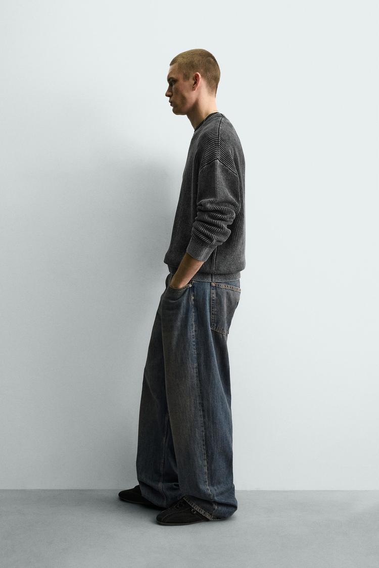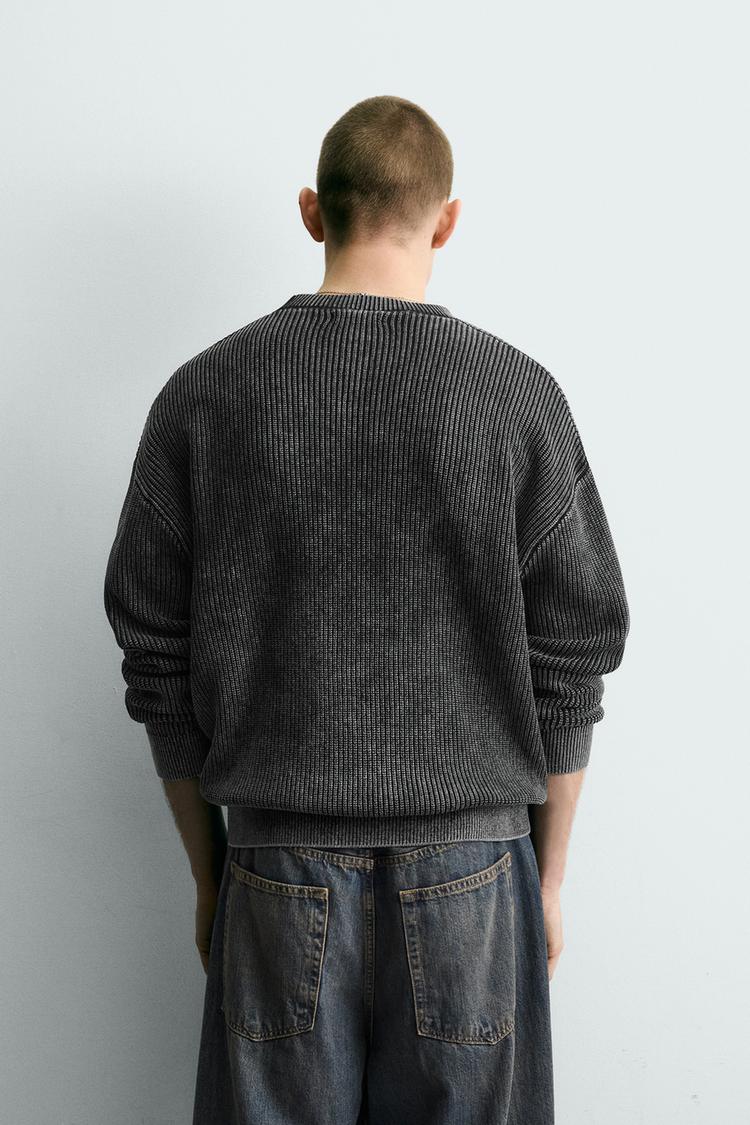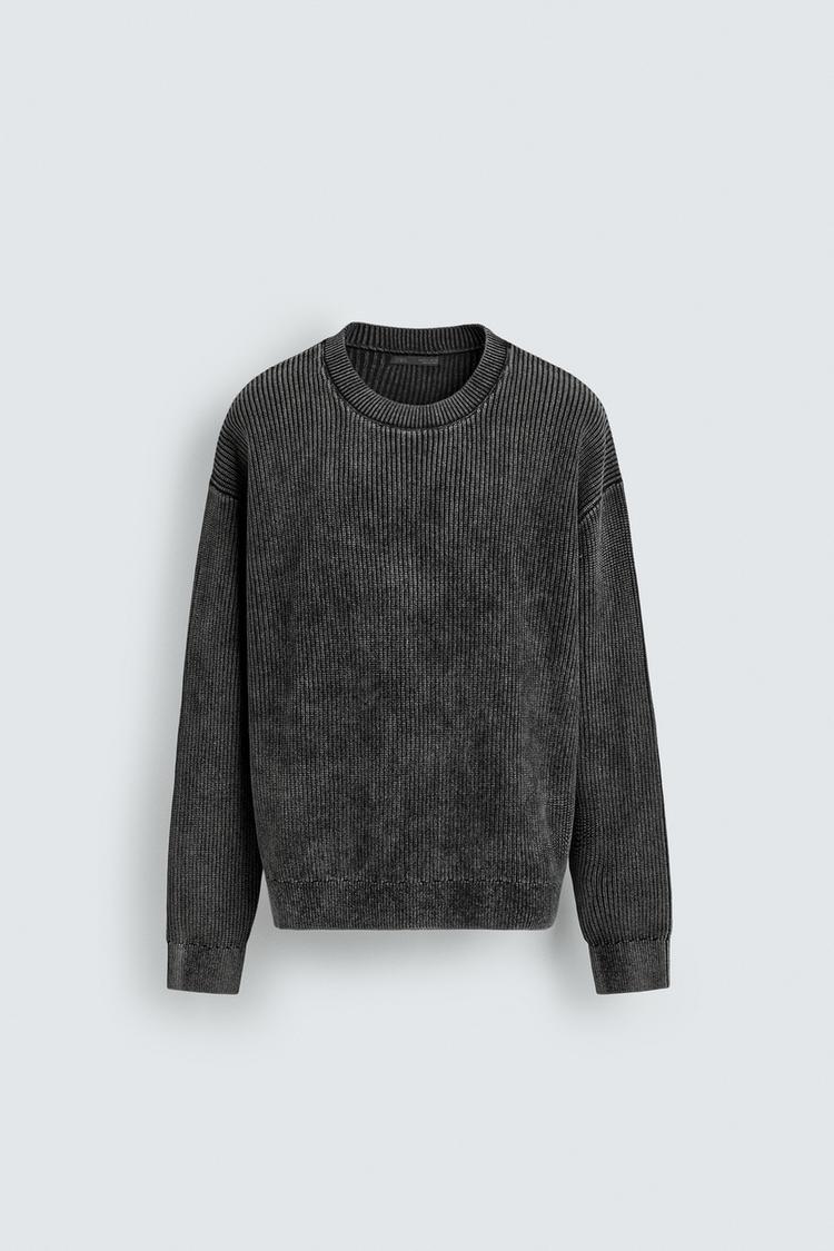 ZARA СВИТЕР В РУБЧИК С ЭФФЕКТОМ ПОТЕРТОСТИМ, ЧЕРНЫЙ
