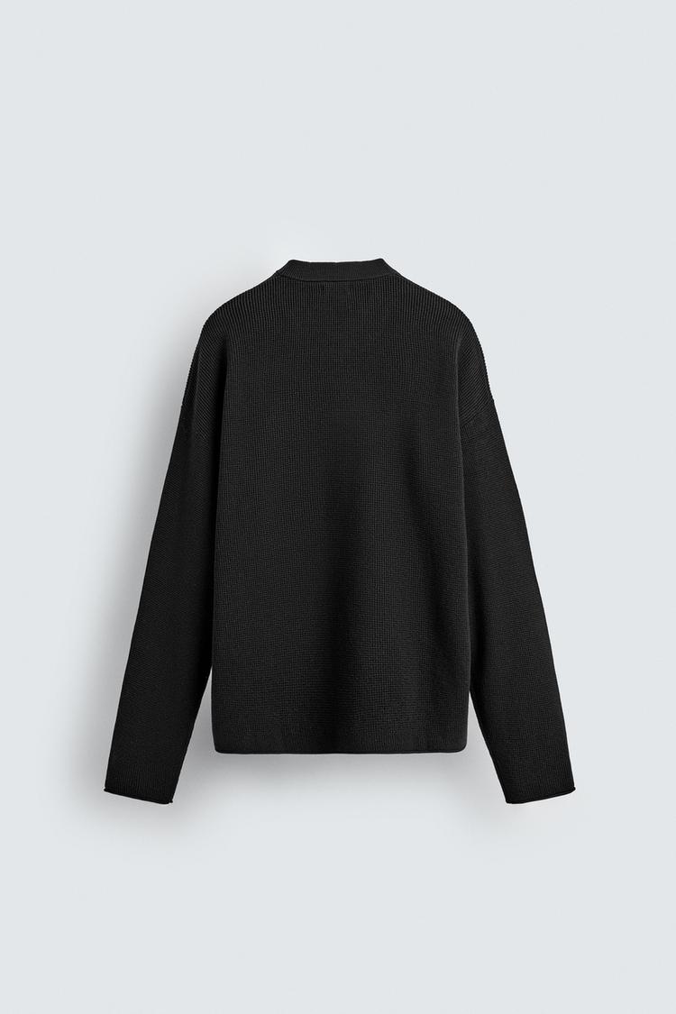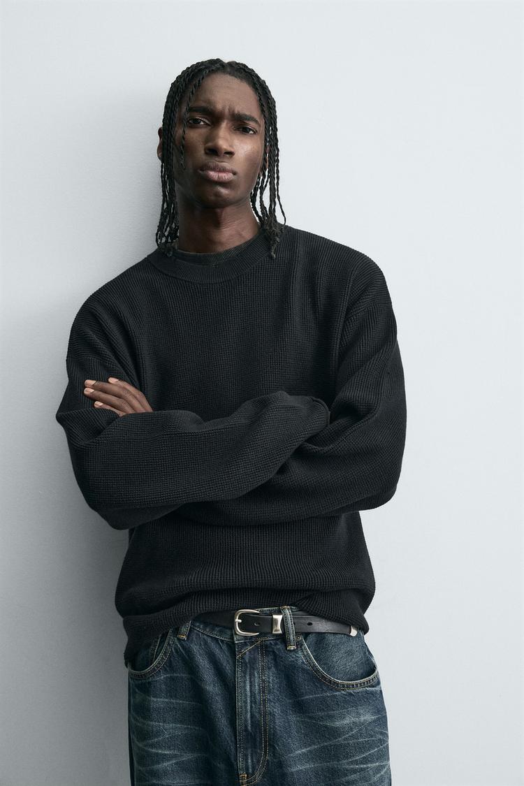 ZARA СВИТЕР ВАФЕЛЬНОГО ПЛЕТЕНИЯ С ЭФФЕКТОМ ПОТЕРТОСТИ, ЧЕРНЫЙ
