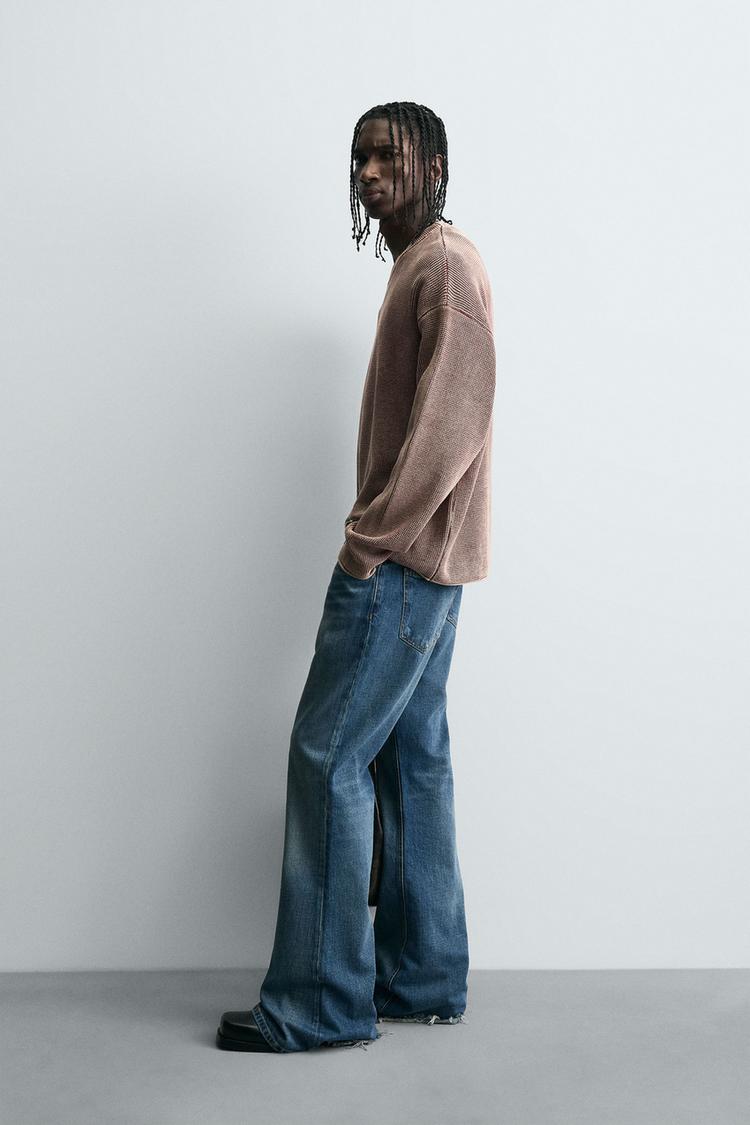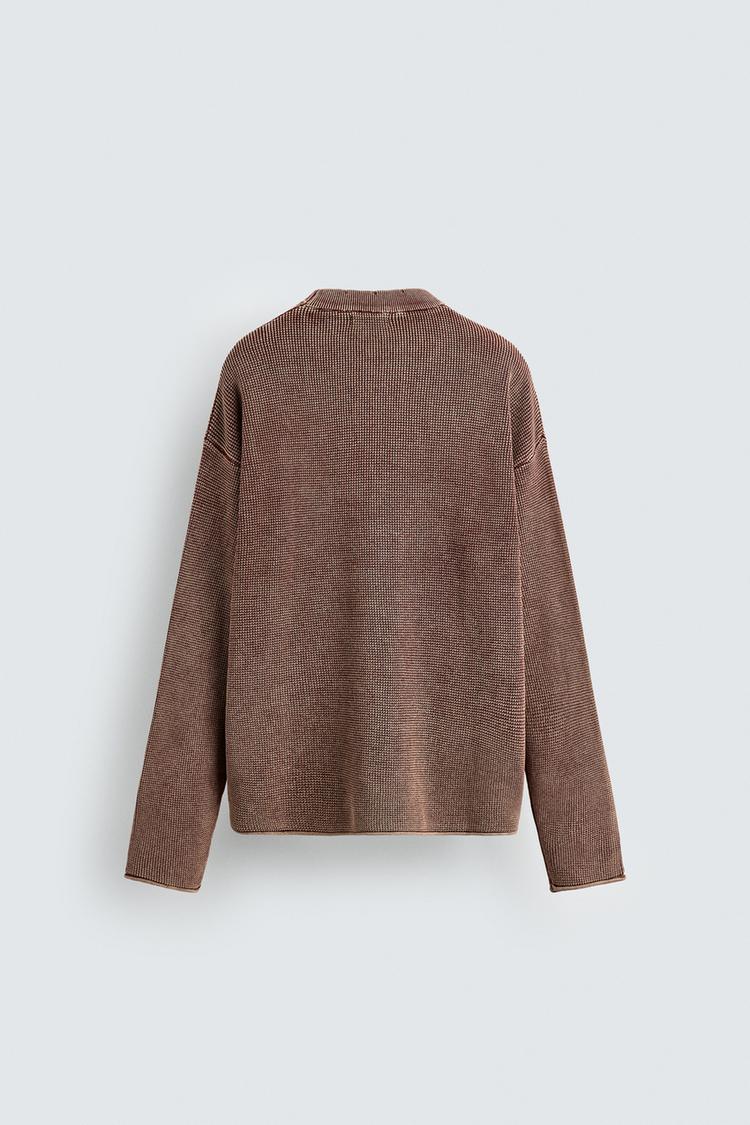 ZARA СВИТЕР ВАФЕЛЬНОГО ПЛЕТЕНИЯ С ЭФФЕКТОМ ПОТЕРТОСТИ, ЛИНЯЛЫЙ КРАСНЫЙ