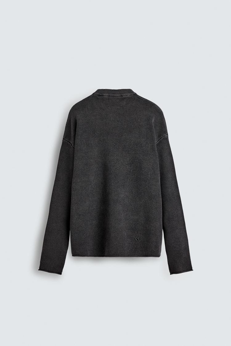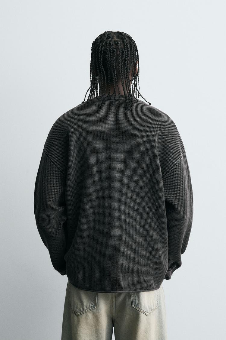 ZARA СВИТЕР ВАФЕЛЬНОГО ПЛЕТЕНИЯ С ЭФФЕКТОМ ПОТЕРТОСТИ, ЛИНЯЛЫЙ ТЕМНО-СИНИЙ
