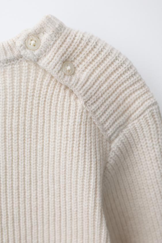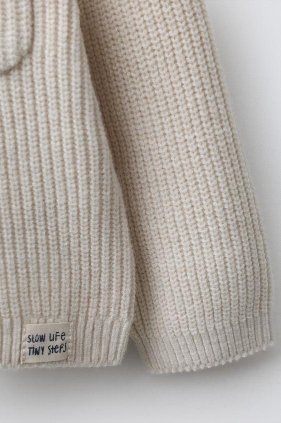 ZARA СВИТЕР ВЯЗАНЫЙ ЖЕМЧУЖНЫЙ КАРМАН, ЦВЕТ ЛЬДА
