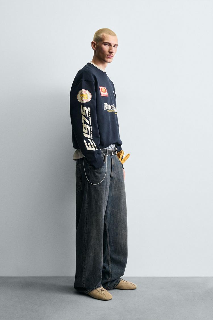 ZARA СВИТШОТ С НАШИВКАМ, МОРСКОЙ СИНИЙ
