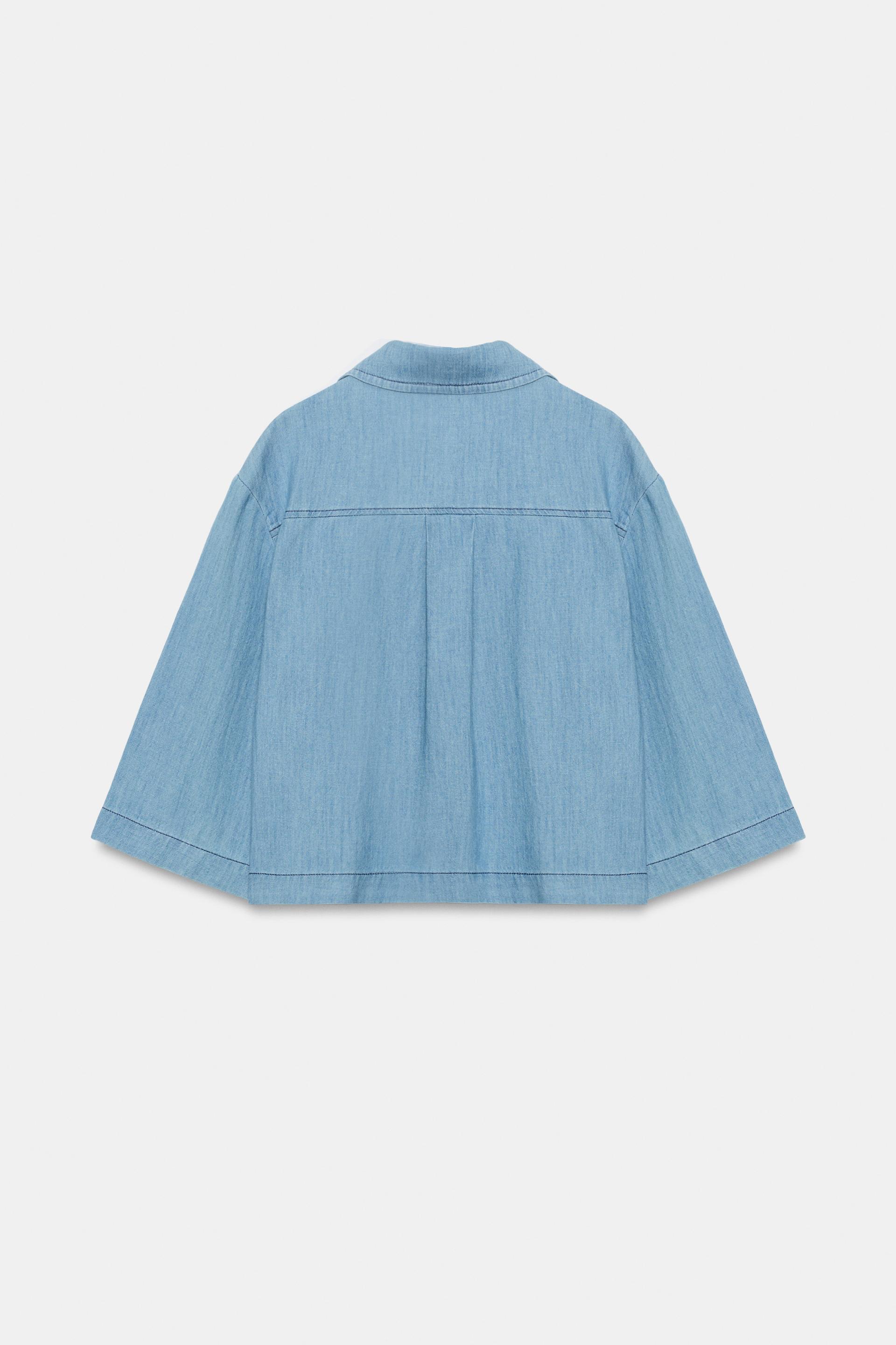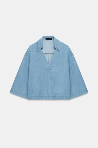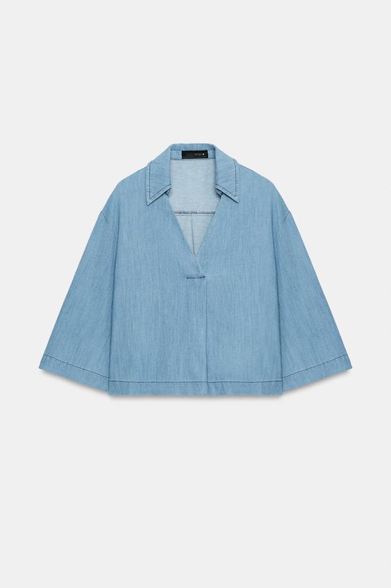 ZARA СВОБОДНАЯ БЛУЗА С V-ОБРАЗНЫМ ВЫРЕЗОМ, СИНИЙ