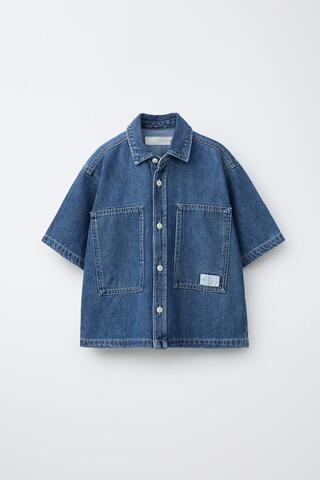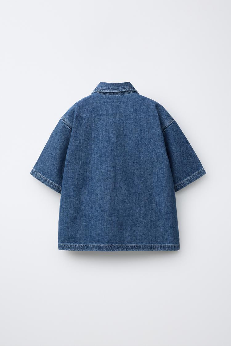 ZARA СВОБОДНАЯ ДЖИНСОВАЯ РУБАШКА, ВЫЦВЕТШИЙ СИНИЙ