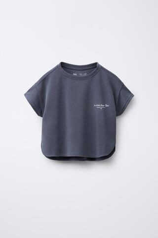 ZARA СВОБОДНАЯ ФУТБОЛКА С НАДПИСЬЮ, СЕРЫЙ