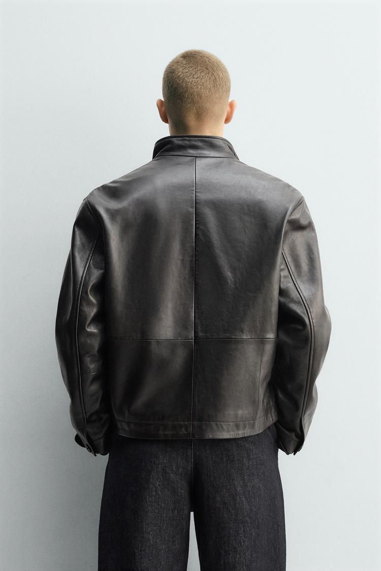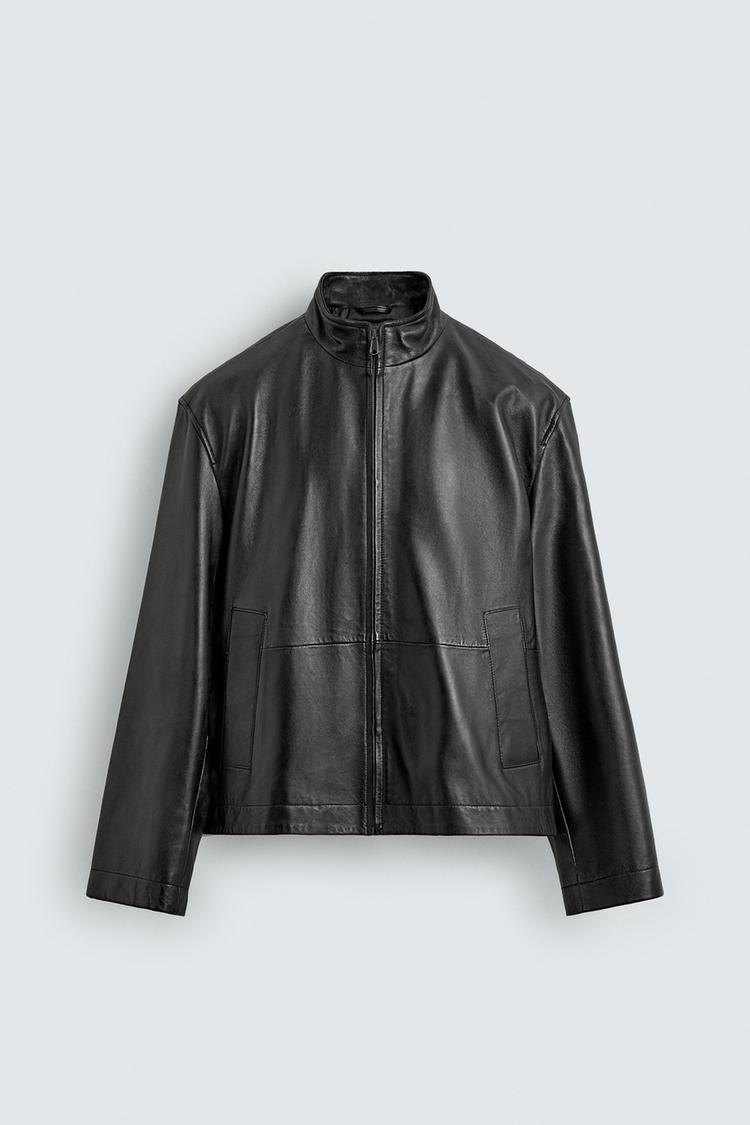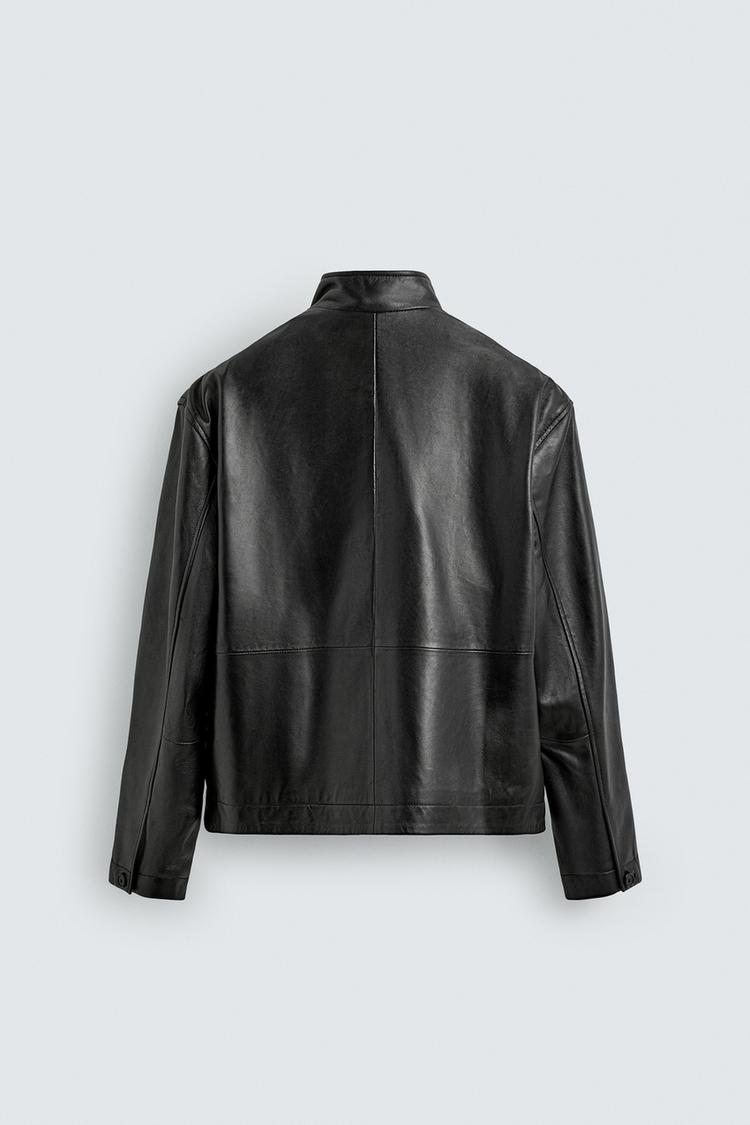 ZARA СВОБОДНАЯ КОЖАНАЯ КУРТКА, ЧЕРНЫЙ