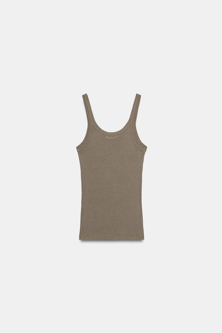 ZARA СВОБОДНАЯ МАЙКА НА БРЕТЕЛЯХ, СЕРОВАТО-КОРИЧНЕВЫЙ