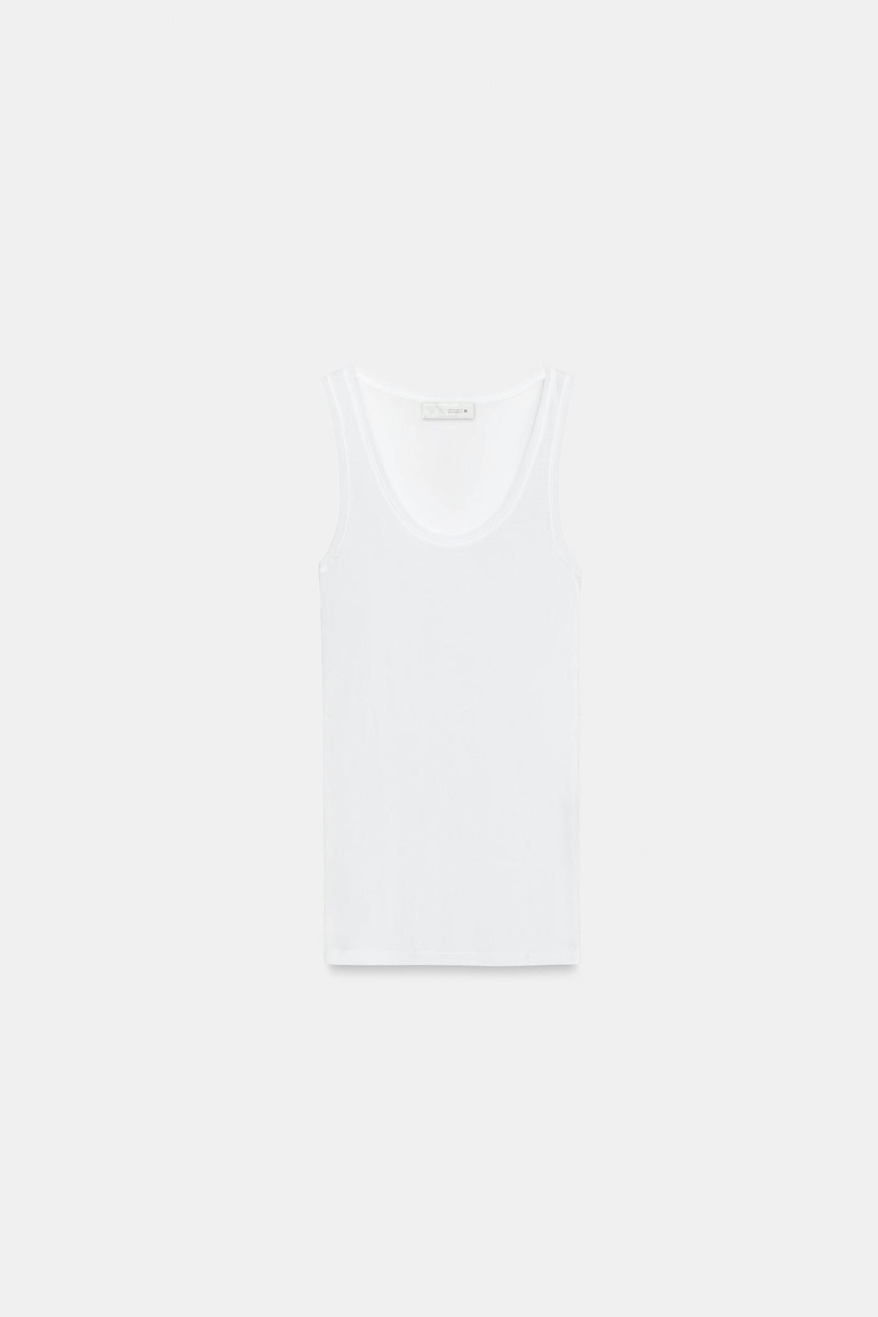 ZARA СВОБОДНАЯ МАЙКА НА БРЕТЕЛЯХ, ТОП ИЗ ХЛОПКА БЕЗ РУКАВОВ, БЕЛЫЙ