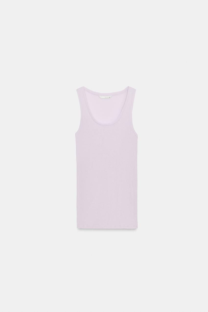 ZARA СВОБОДНАЯ МАЙКА НА БРЕТЕЛЯХ, ТОП ИЗ ХЛОПКА БЕЗ РУКАВОВ, СИРЕНЕВЫЙ