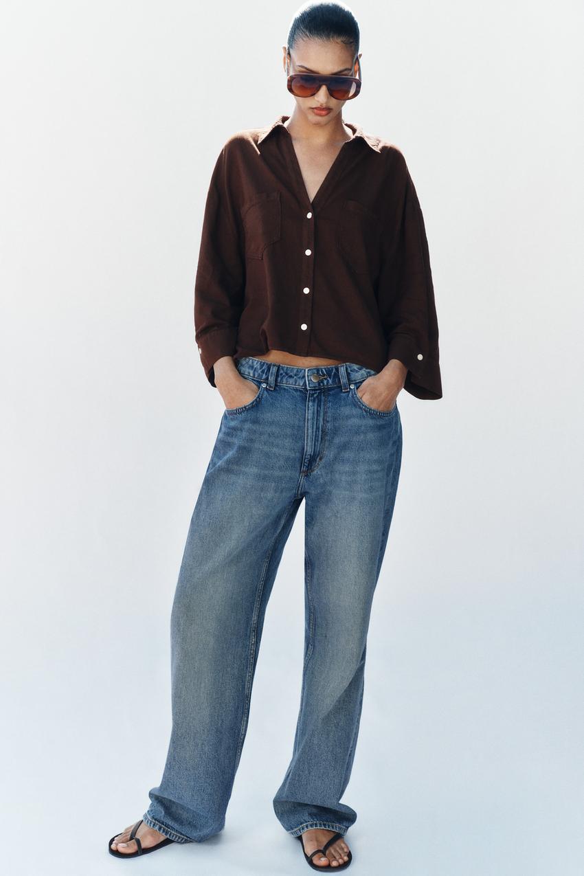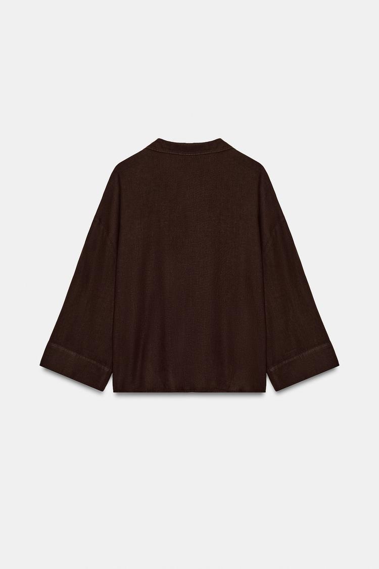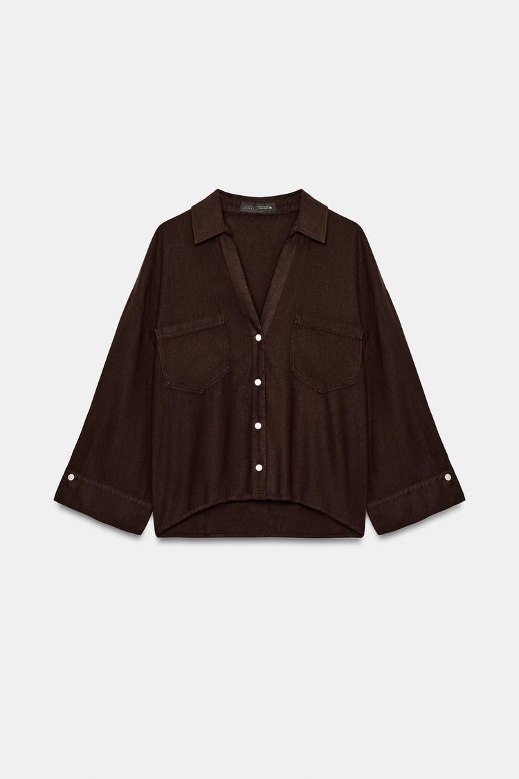 ZARA СВОБОДНАЯ РУБАШКА ИЗ ЛЬНА, КОРИЧНЕВЫЙ