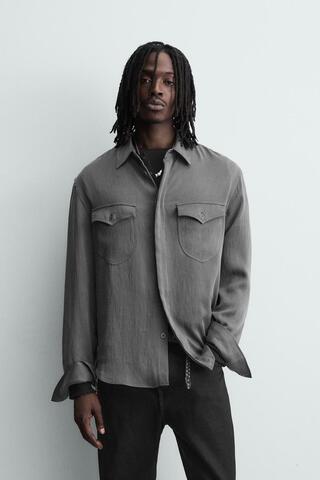 ZARА СВОБОДНАЯ РУБАШКА С КАРМАНАМИ, СЕРЫЙ