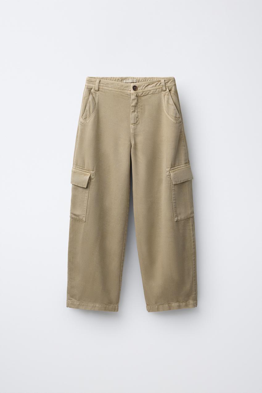 ZARA СВОБОДНЫЕ БРЮКИ КАРГО BARREL, БЕЖЕВЫЙ