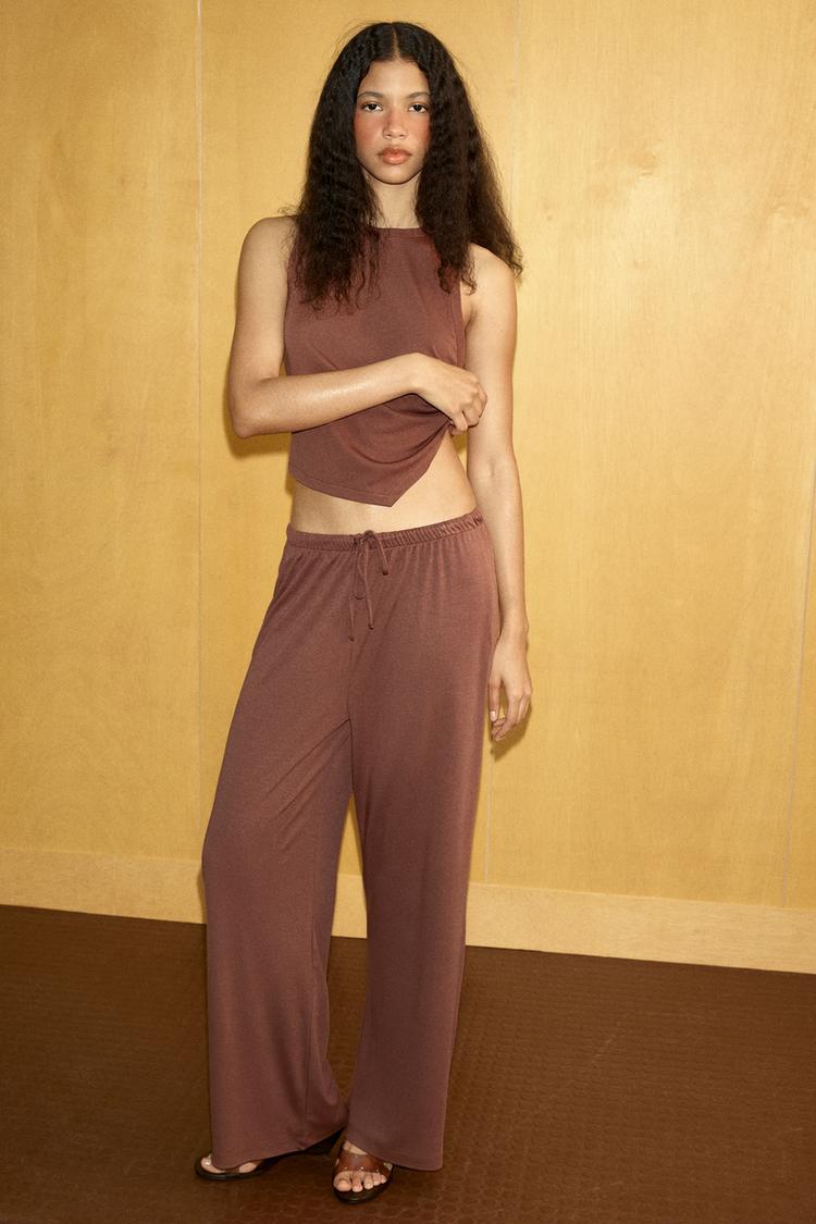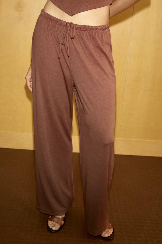 ZARA СВОБОДНЫЕ БРЮКИ НА ШНУРКЕ, ТЕРРАКОТОВЫЙ