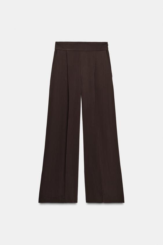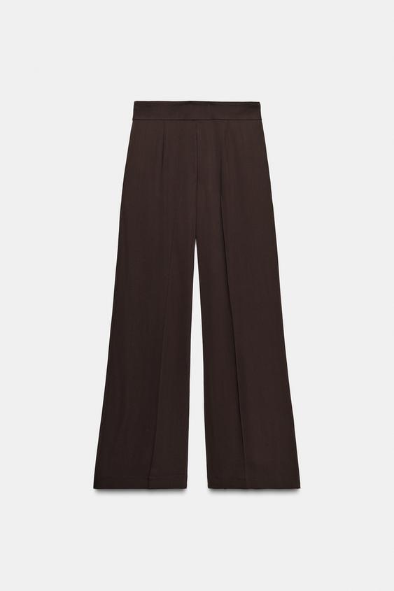 ZARA СВОБОДНЫЕ БРЮКИ С ЗАЩИПАМИ — ZW COLLECTION, КОРИЧНЕВЫЙ