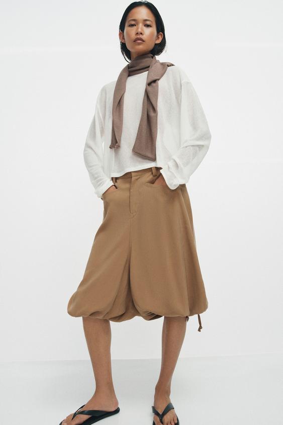ZARA СВОБОДНЫЕ ДЛИННЫЕ ШОРТЫ — ZW COLLECTION, МЯГКИЙ КАШТАНОВЫЙ