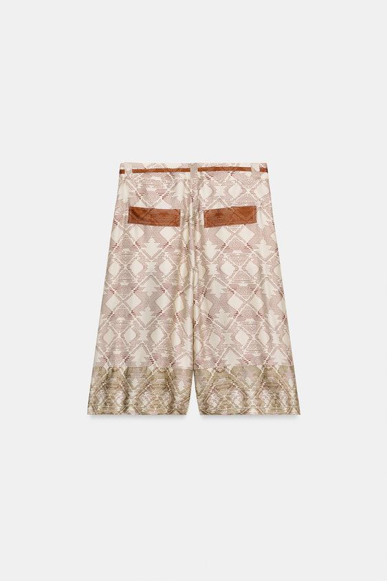 ZARA СВОБОДНЫЕ ШОРТЫ С ПРИНТОМ — ZW COLLECTION, ЭКРЮ