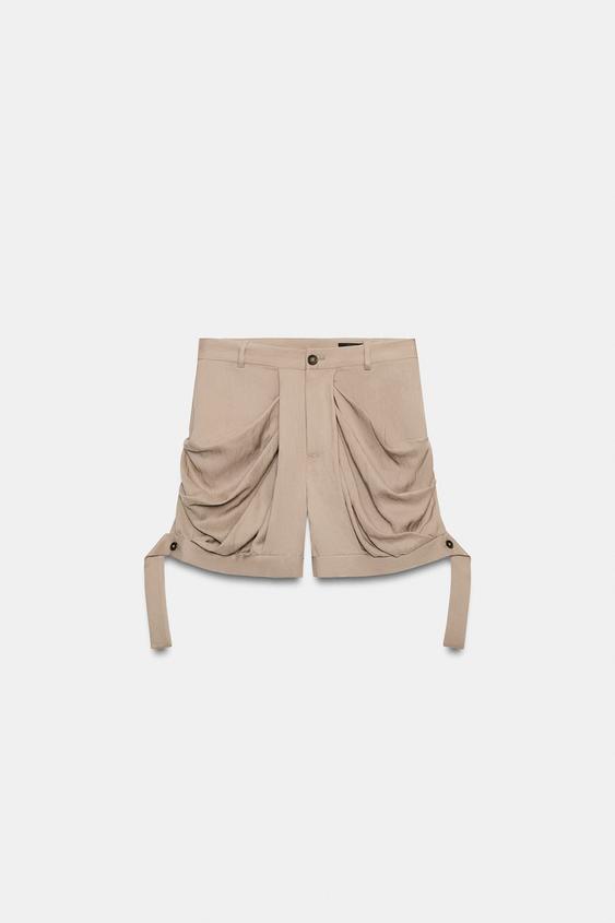 ZARA СВОБОДНЫЕ ШОРТЫ С ЗАЩИПАМИ — ZW COLLECTION, СЕРО-КОРИЧНЕВЫЙ