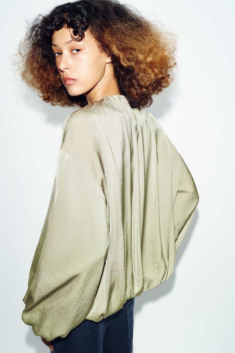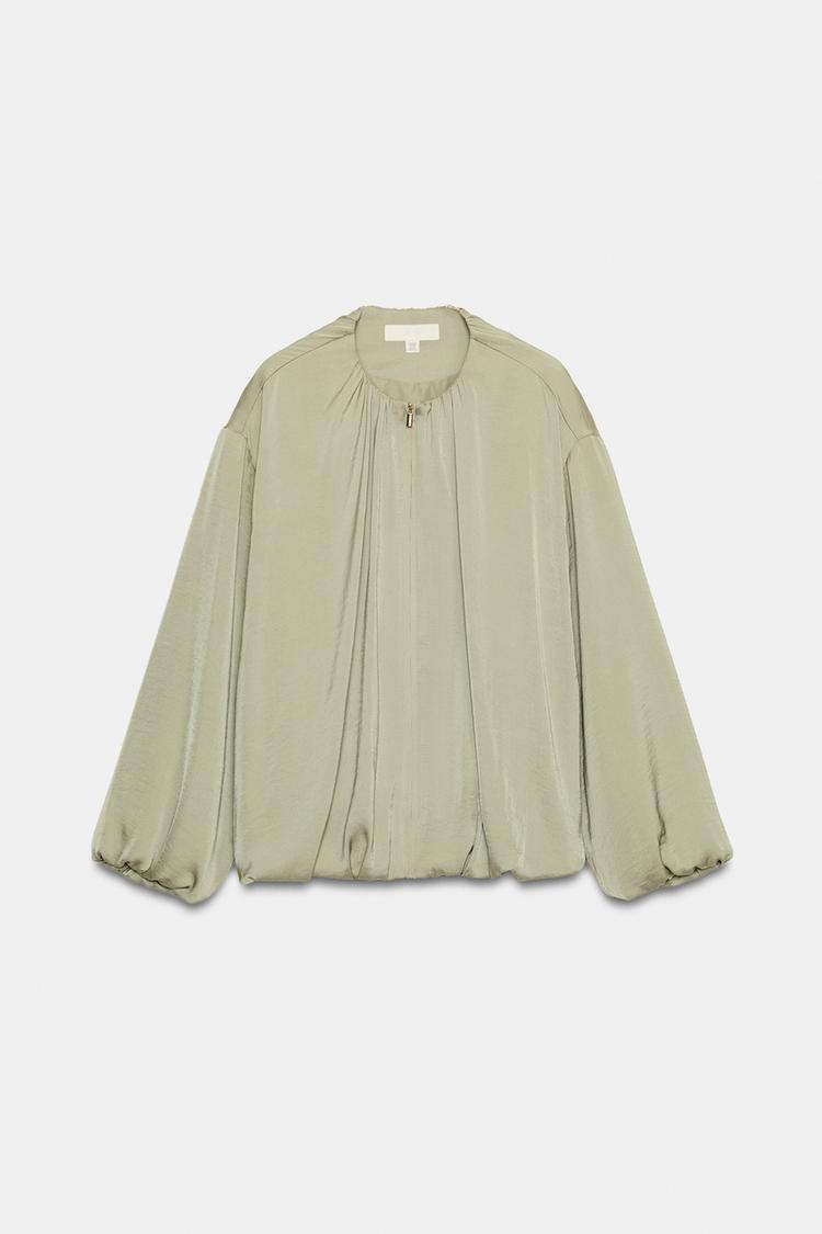 ZARA СВОБОДНЫЙ БОМБЕР-БАЛЛОН, СВЕТЛЫЙ ХАКИ
