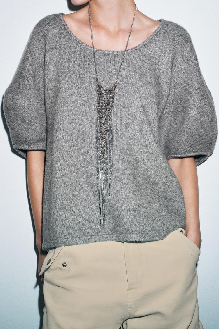 ZARA СВОБОДНЫЙ СВИТЕР ИЗ ТРИКОТАЖА, СЕРЫЙ