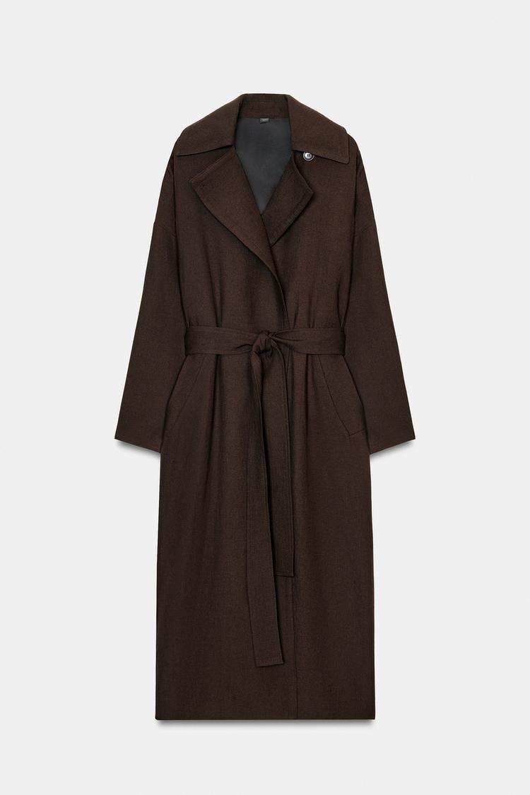 ZARA СВОБОДНЫЙ ТРЕНЧ ИЗ ШЕРСТИ ZW LIMITED EDITION, ОТТЕНКИ КОРИЧНЕВОГО