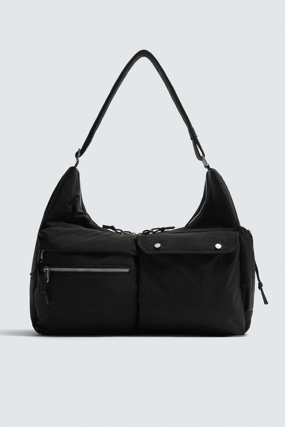 ZARA ТЕХНИЧЕСКАЯ СУМКА С МНОЖЕСТВОМ КАРМАНОВ, ЧЕРНЫЙ