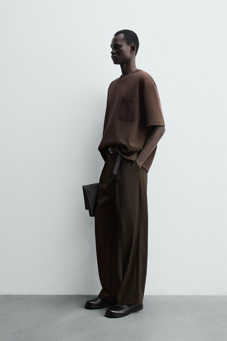 ZARA ТЕХНИЧЕСКАЯ ТОЛСТОВКА С КАРМАНОМ, КОРИЧНЕВЫЙ