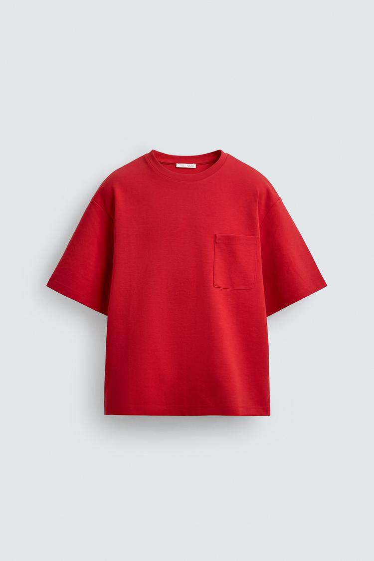 ZARA ТЕХНИЧЕСКАЯ ТОЛСТОВКА С КАРМАНОМ, КРАСНЫЙ