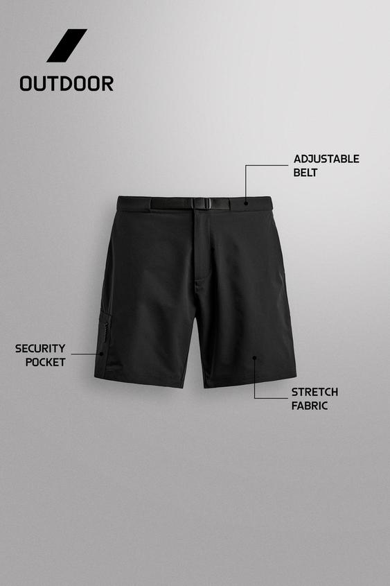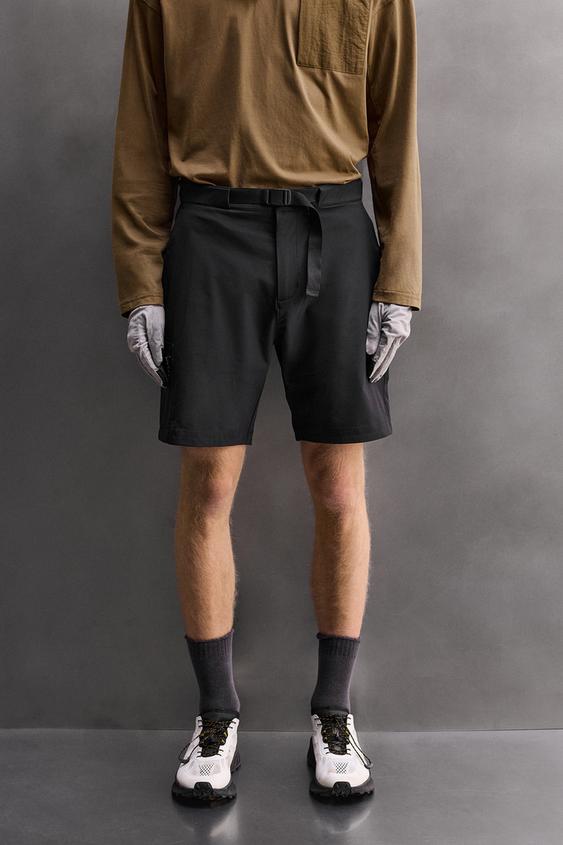 ZARA ТЕХНИЧЕСКИЕ ШОРТЫ КАРГО, ЧЕРНЫЙ