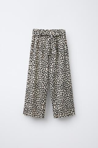 ZARA ТЕКСТУРНЫЕ БРЮКИ С РЕМНЕМ С АНИМАЛИСТИЧЕСКИМ ПРИНТОМ, ЛЕОПАРДОВЫЙ