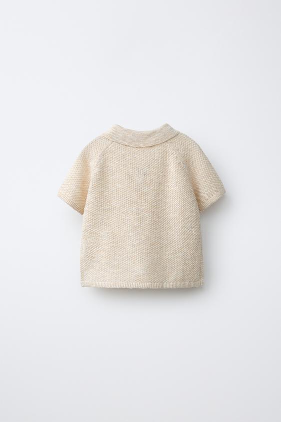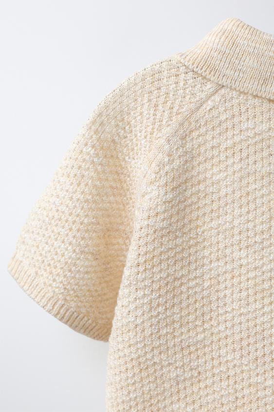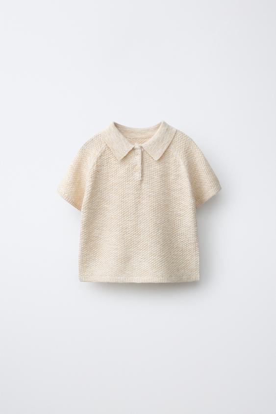 ZARA ТЕКСТУРНЫЙ СВИТЕР ПОЛО, СВЕТЛО-БЕЖЕВЫЙ