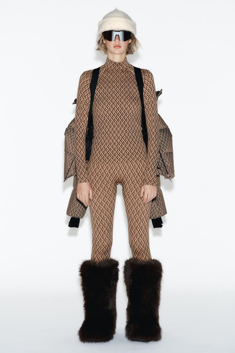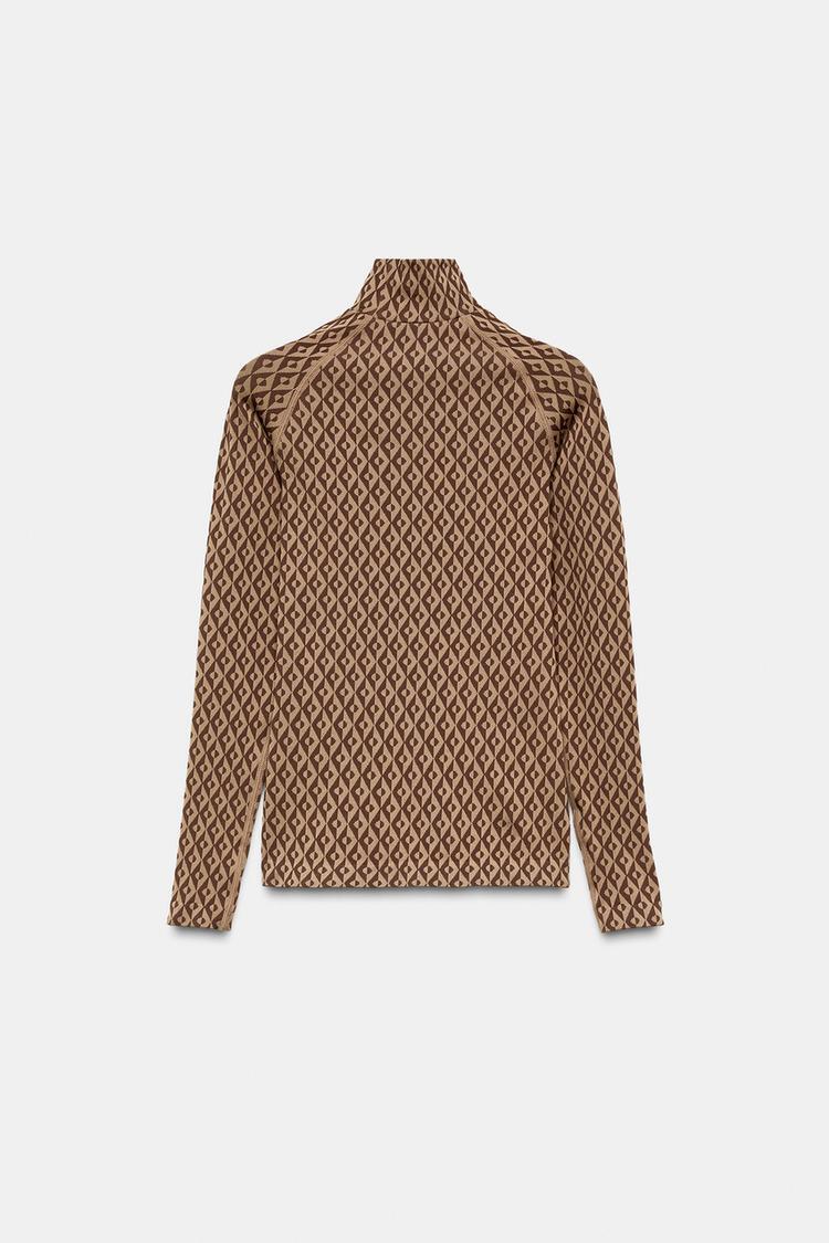 ZARA ТЕРМОФУТБОЛКА SKI COLLECTION С КОНТРАСТНЫМ УЗОРОМ, ТАБАЧНЫЙ
