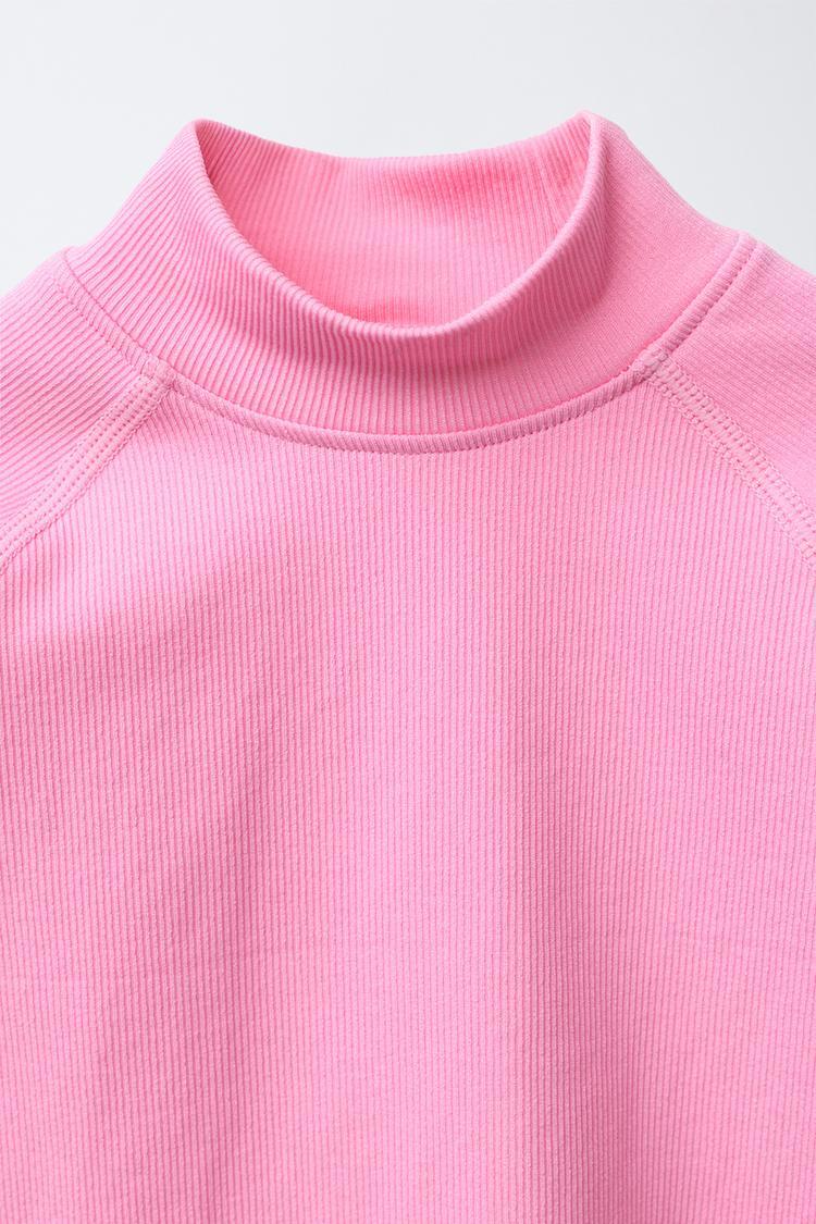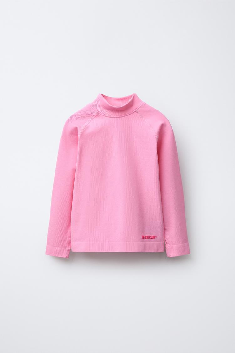 ZARA ТЕРМОФУТБОЛКА В РУБЧИК С РЕЛЬЕФНОЙ НАДПИСЬЮ, РОЗОВЫЙ