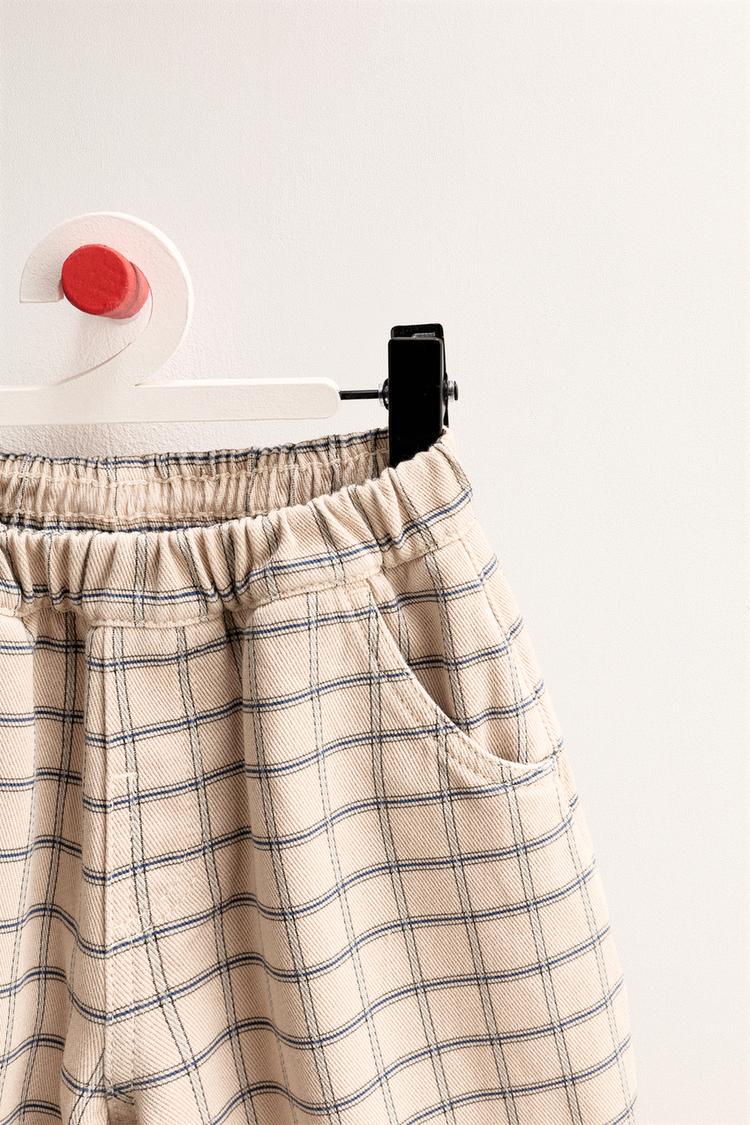 Брюки в клетку из хлопка и льна. Эластичный пояс для комфортной посадки.