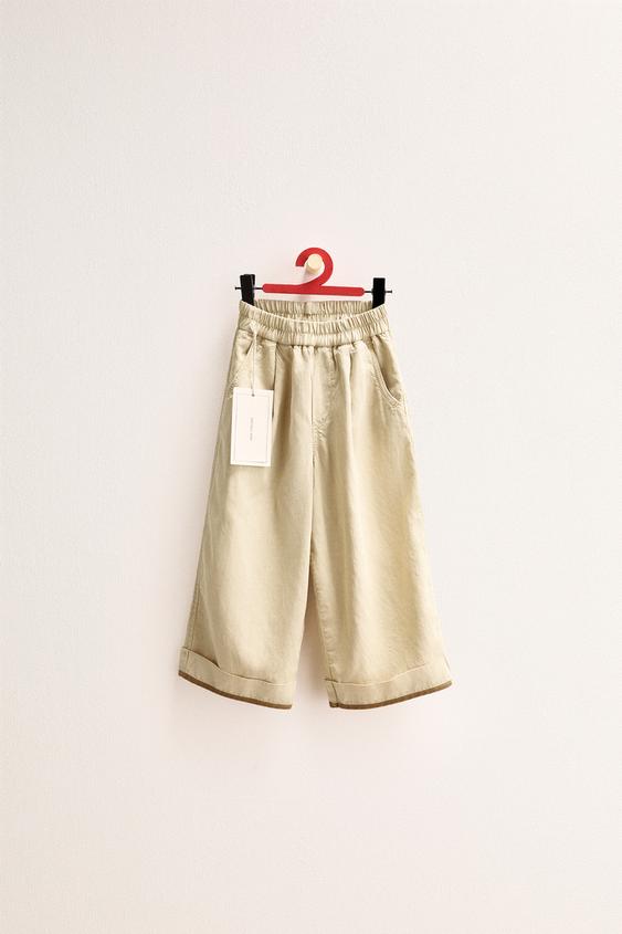 ZARA TIMELESS - БРЮКИ ИЗ ЛЬНА С КОНТРАСТНОЙ ОТДЕЛКОЙ, ЦВЕТ СЛИВОЧНОГО МАСЛА