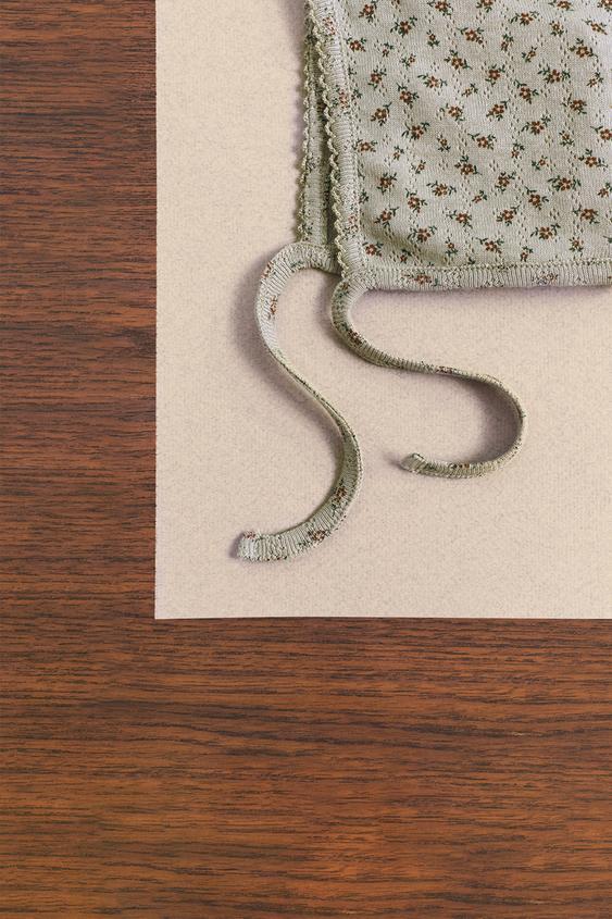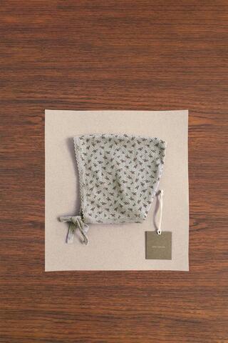 Чепчик из хлопкового трикотажа с ажурным узором. Регулируемая застежка спереди.