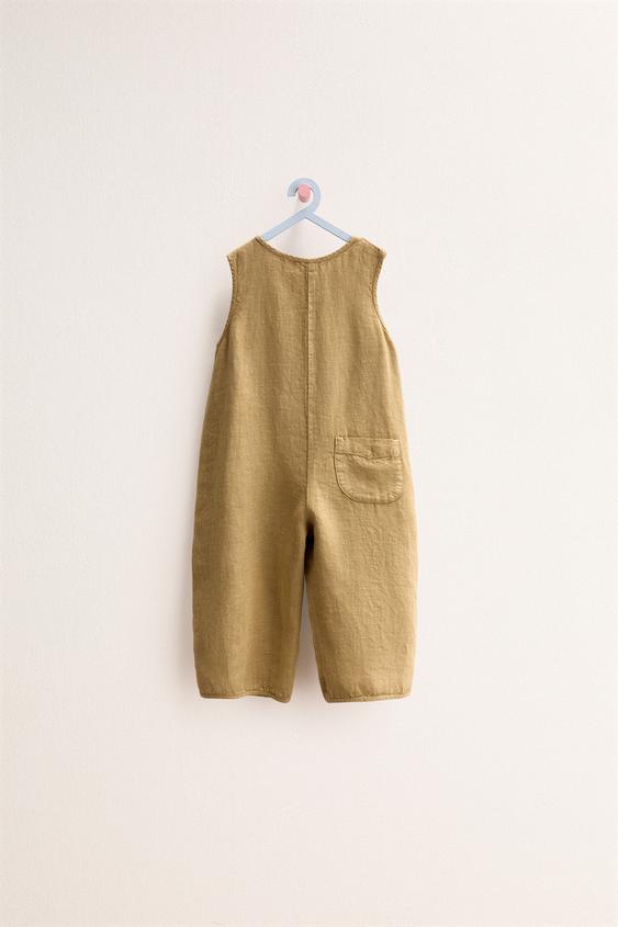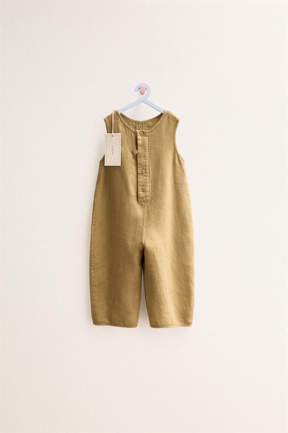 ZARA TIMELESS - ДЛИННЫЙ КОМБИНЕЗОН ИЗ 100% ЛЬНА, ЦВЕТ ОЛИВКОВОГО МАСЛА
