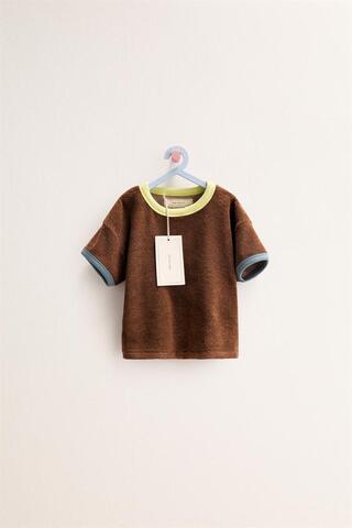 ZARA TIMELESS ФУТБОЛКА ИЗ МАХРОВОЙ ТКАНИ, ШОКОЛАДНЫЙ