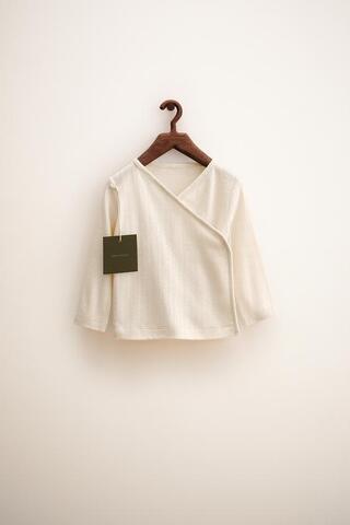 Футболка в стиле кимоно из хлопковой ткани. Модель с запа́хом и боковой застежкой на кнопки.