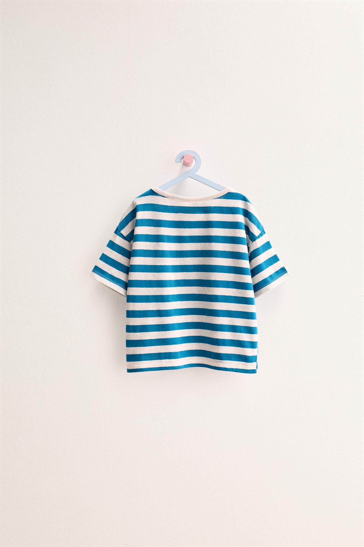 ZARA TIMELESS - ФУТБОЛКА В ПОЛОСКУ ИЗ ХЛОПКА И ЛЬНА, БИРЮЗОВЫЙ
