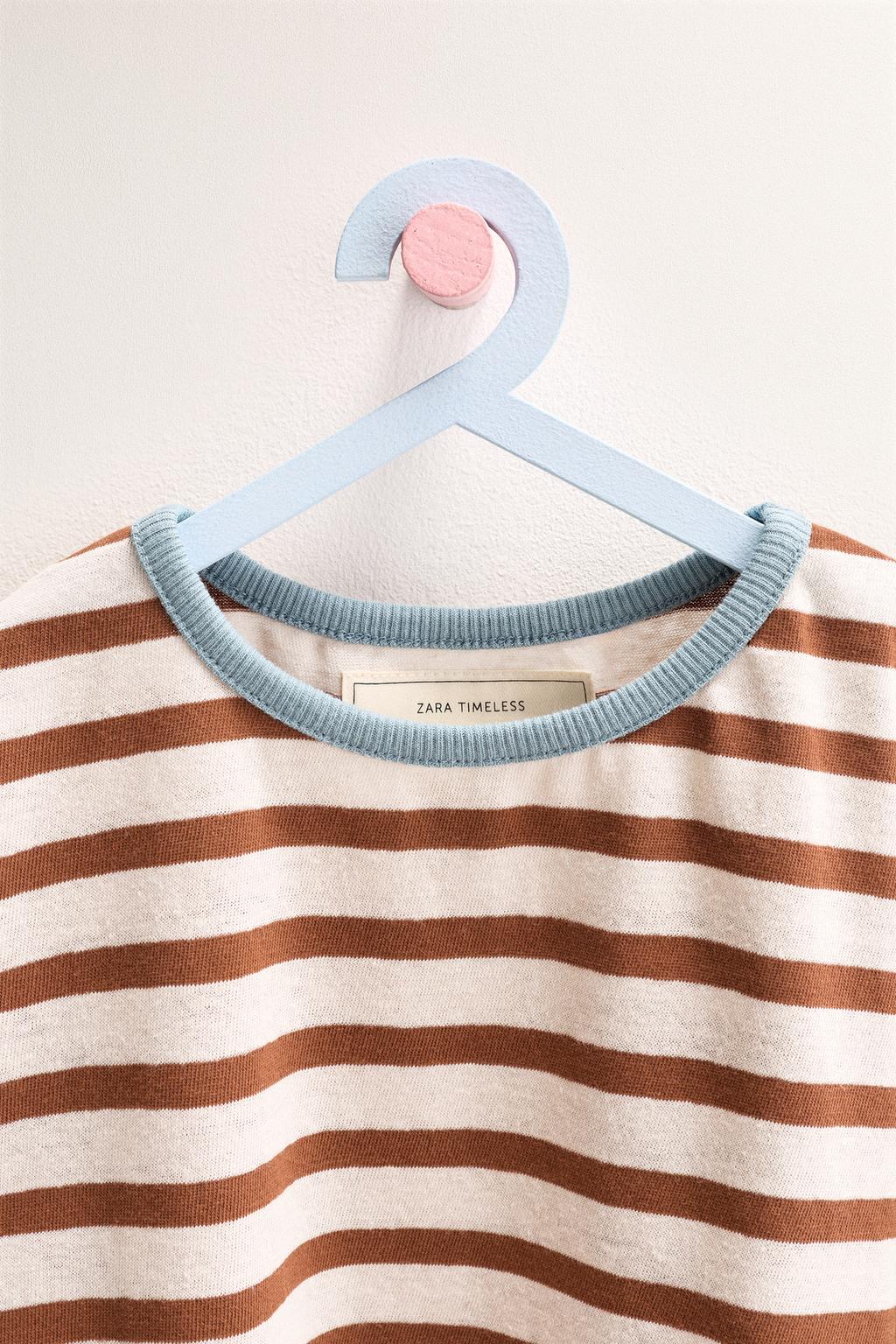 ZARA TIMELESS - ФУТБОЛКА В ПОЛОСКУ ИЗ ХЛОПКА И ЛЬНА, СВЕТЛО-БЕЖЕВЫЙ