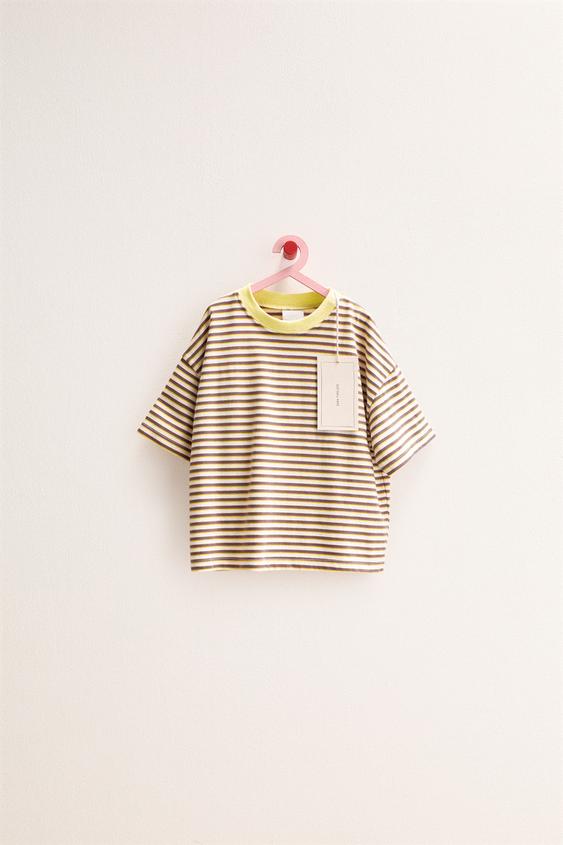 ZARA TIMELESS - ФУТБОЛКА В ПОЛОСКУ С КОНТРАСТНЫМ ВОРОТНИКОМ, ЖЕЛТЫЙ