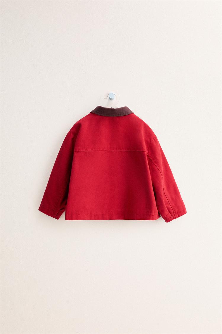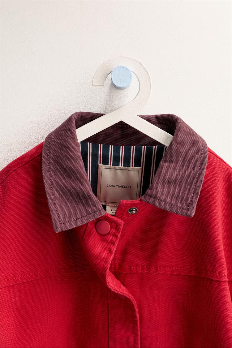 ZARA TIMELESS - ХЛОПКОВАЯ КУРТКА С КОНТРАСТНЫМ ВОРОТНИКОМ, КРАСНЫЙ