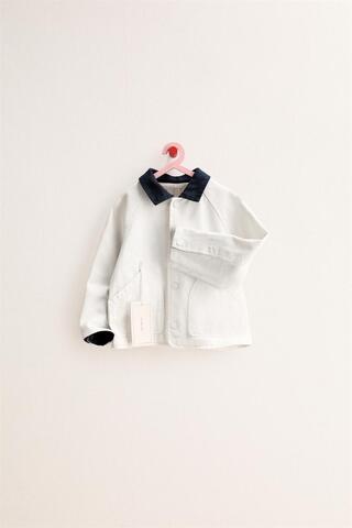 ZARA TIMELESS - КУРТКА ИЗ ХЛОПКОВОГО ХОЛСТА С КОНТРАСТНЫМ ВОРОТНИКОМ, БЕЛЫЙ