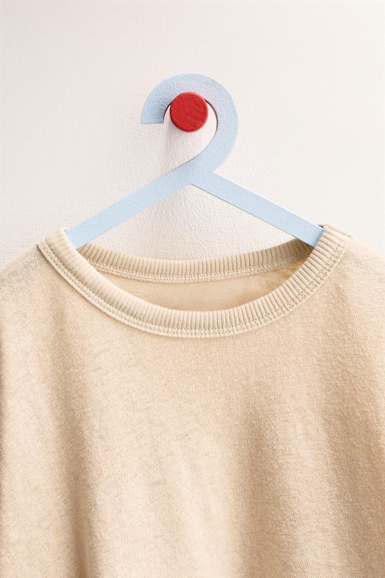 ZARA TIMELESS - ОДНОТОННАЯ ФУТБОЛКА ИЗ ХЛОПКА И ЛЬНА, БЕЖЕВЫЙ